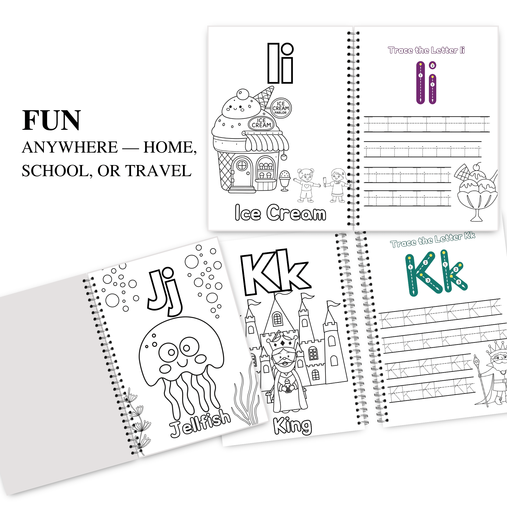 Make learning the alphabet exciting with this bright and engaging ABC Tracing Coloring Book for kids. Designed to support early learners, this book includes fun tracing worksheets, writing worksheets, letter tracing, tracing letters, and simple coloring pages that help children practice important beginner skills.
