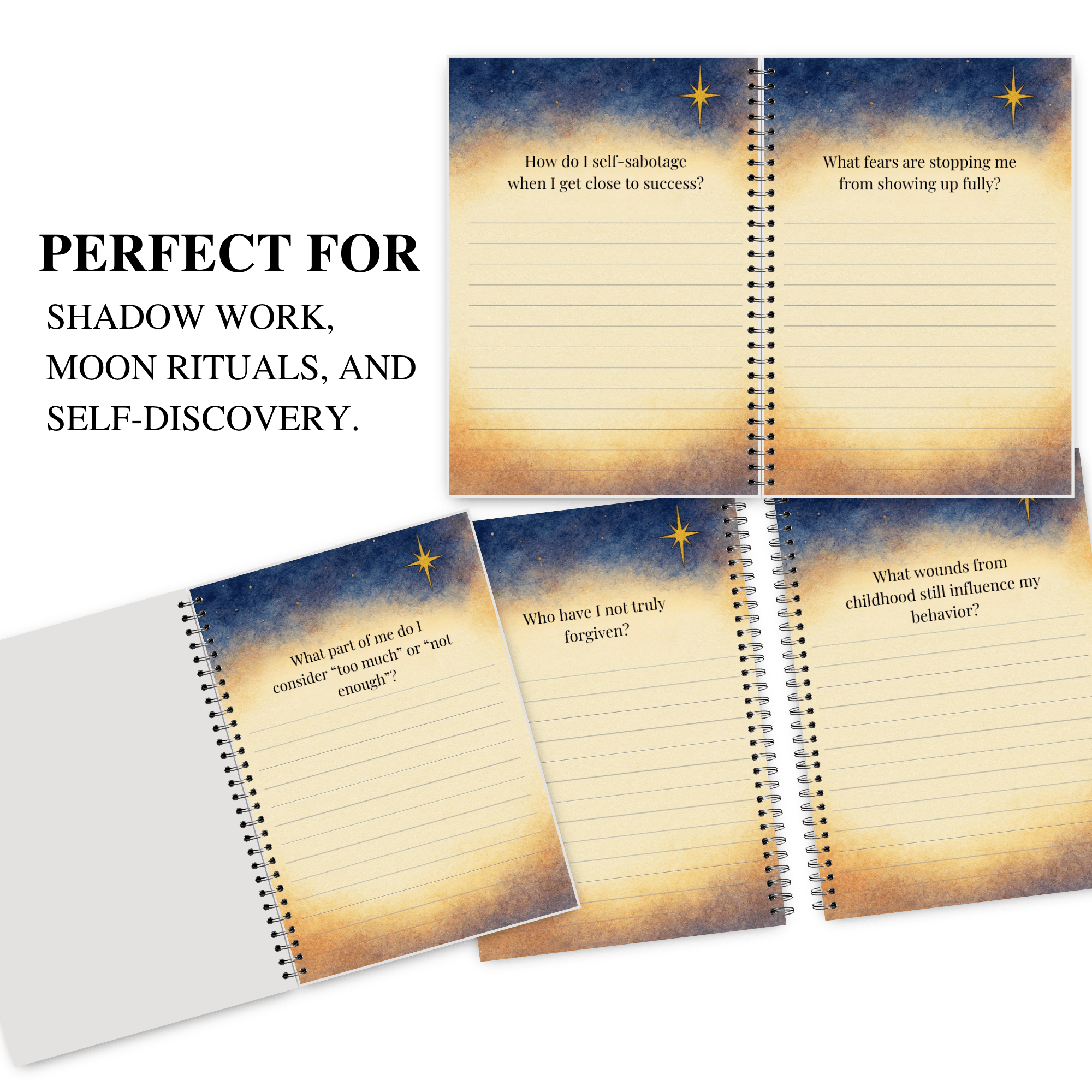 Use this moon journal as a personal shadow workbook, healing journal, or full moon ritual companion. It also makes a thoughtful gift for anyone who enjoys shadow work, moon magic, self-care, witchy aesthetics, or witch spell books inspired journals.