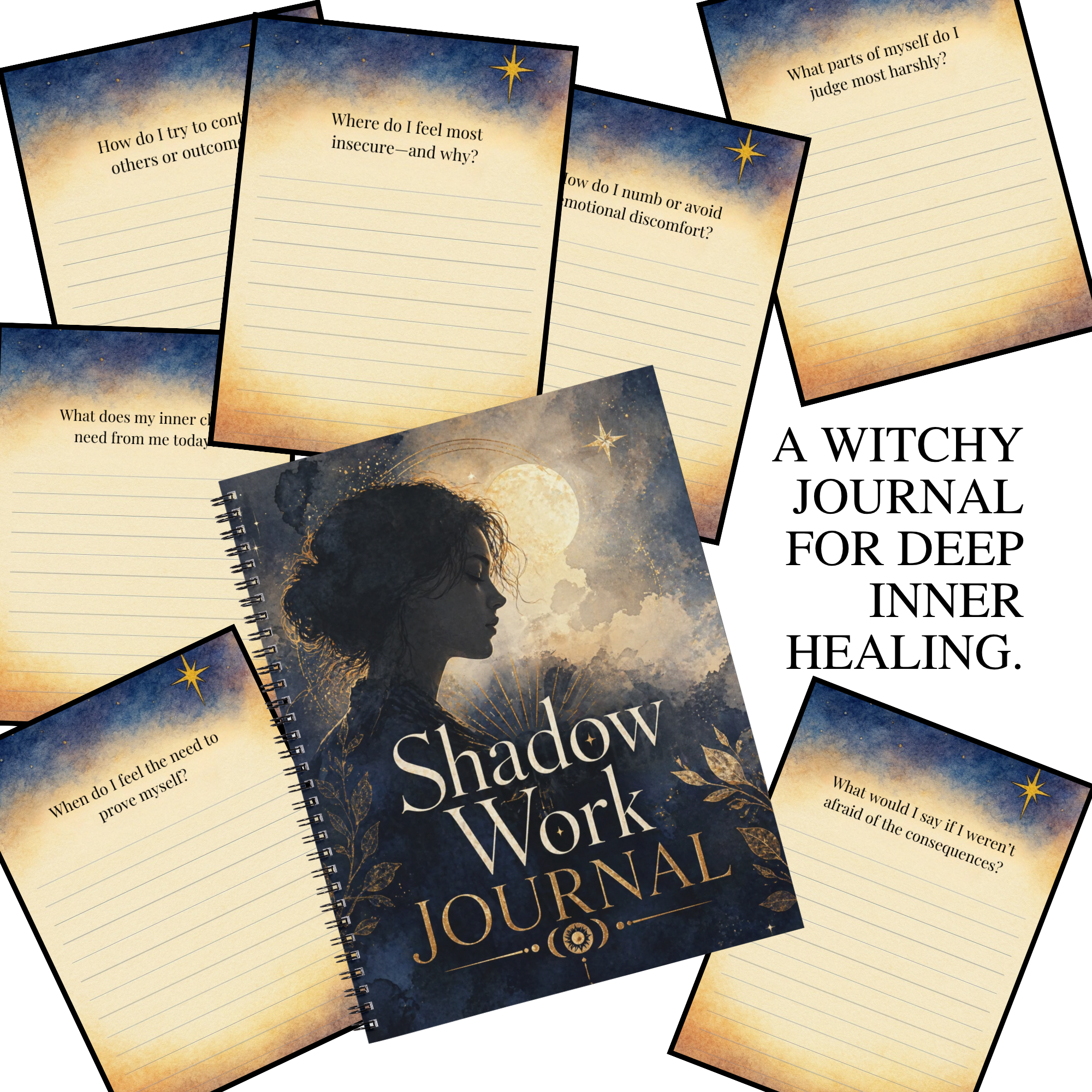 Start your healing journey with this Shadow Work Witch Journal, a beginner-friendly shadow work guide created for full moon reflection, emotional healing, and deep self-discovery. This guided shadow work workbook includes 50 thoughtful shadow work prompts to help you explore hidden emotions, release what no longer serves you, and grow through honest reflection.