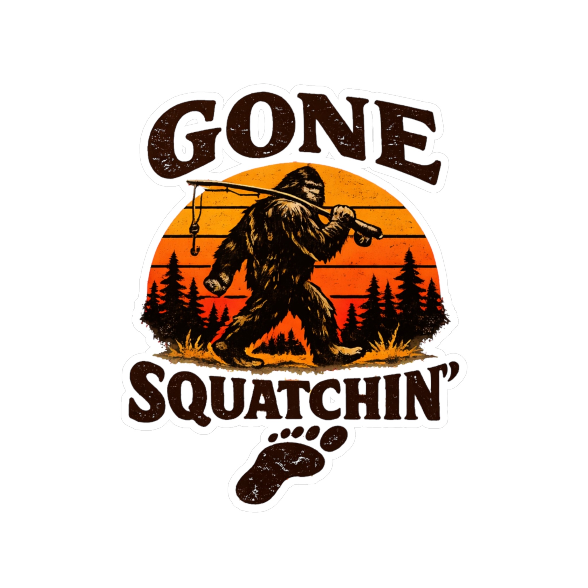 Head out into the wild with this bold Gone Squatchin’ Sasquatch Sticker featuring a retro sunset Bigfoot design. Perfect for your Jeep, truck, SUV, laptop, cooler, or water bottle, this high-quality Bigfoot Vinyl Decal is made to stand out wherever you stick it. Whether you’re a believer, camper, hiker, or collector of bigfoot merchandise, this design makes one of the best sasquatch gifts or bigfoot gifts for outdoor lovers and cryptid fans.