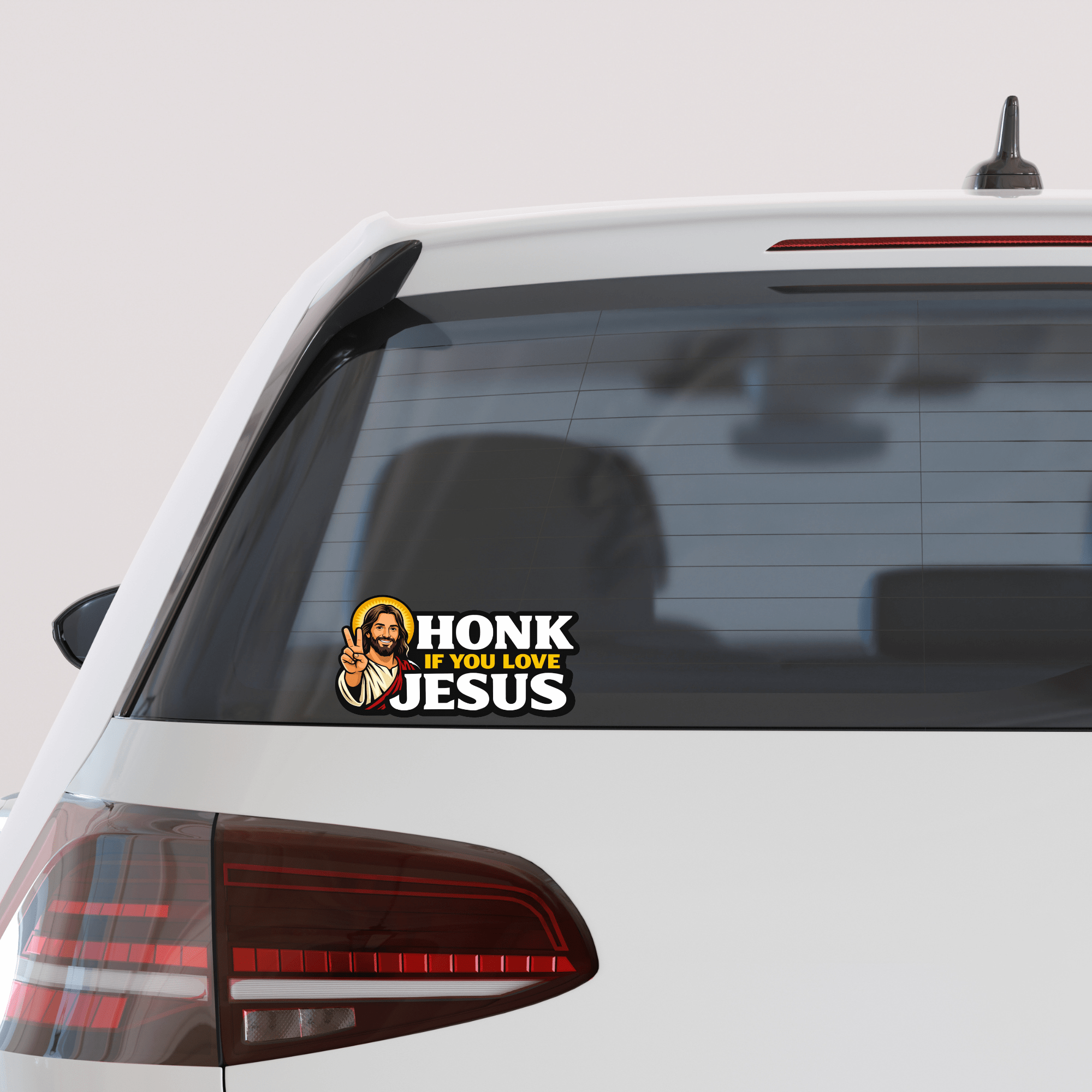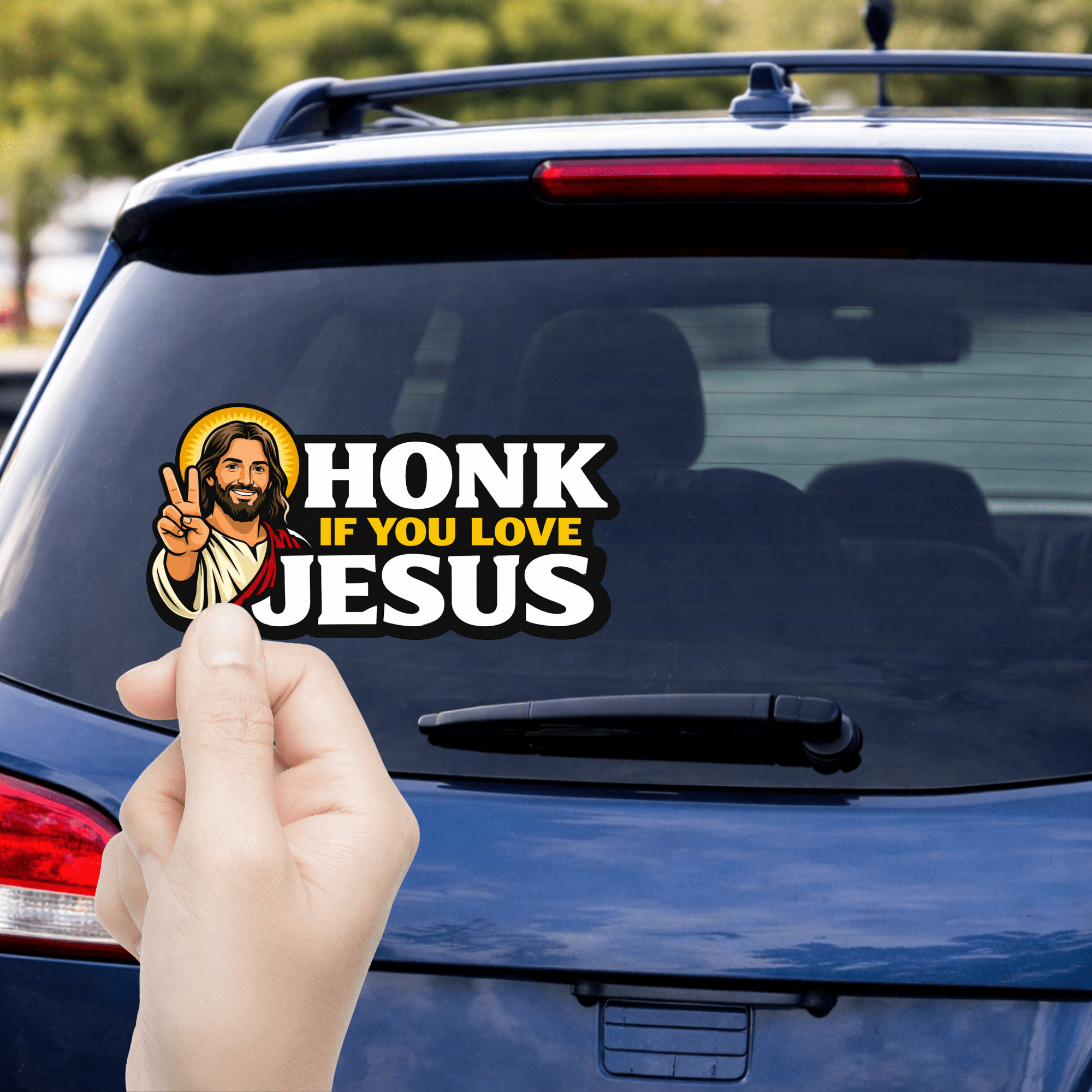 Share your faith with humor and bold style using this Honk If God Is Good car sticker. This fun Jesus sticker features a cheerful peace-sign Jesus illustration paired with bright, high-contrast lettering that stands out on any surface. Designed as a durable vinyl sticker, it brings a lighthearted Christian message wherever you place it.