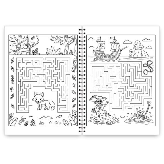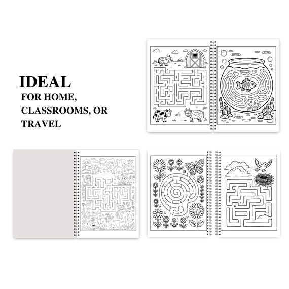 This Maze Coloring Book is a fun and engaging activity book designed to keep kids entertained while supporting learning and focus. Perfect as a quiet book or busy book, each page invites children to solve a maze first, then enjoy coloring the scene—combining creativity with brain teaser challenges and brain games kids love.