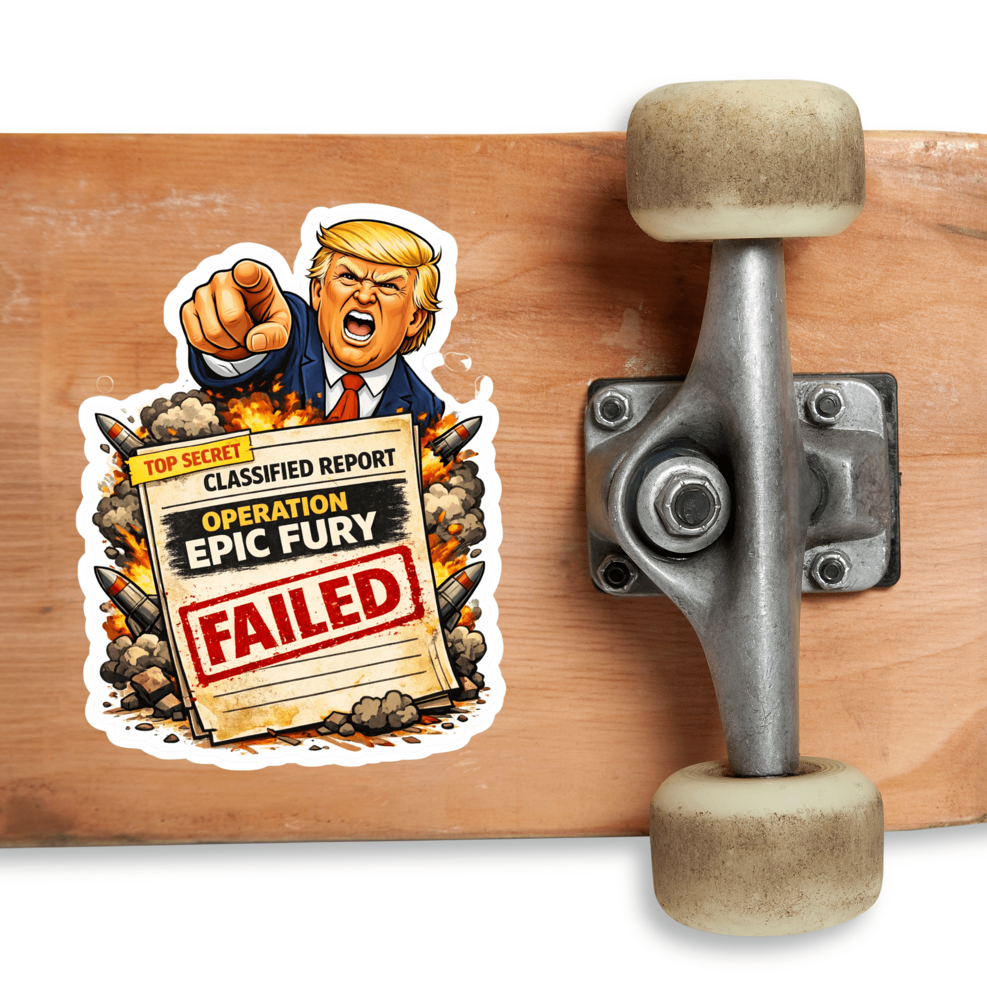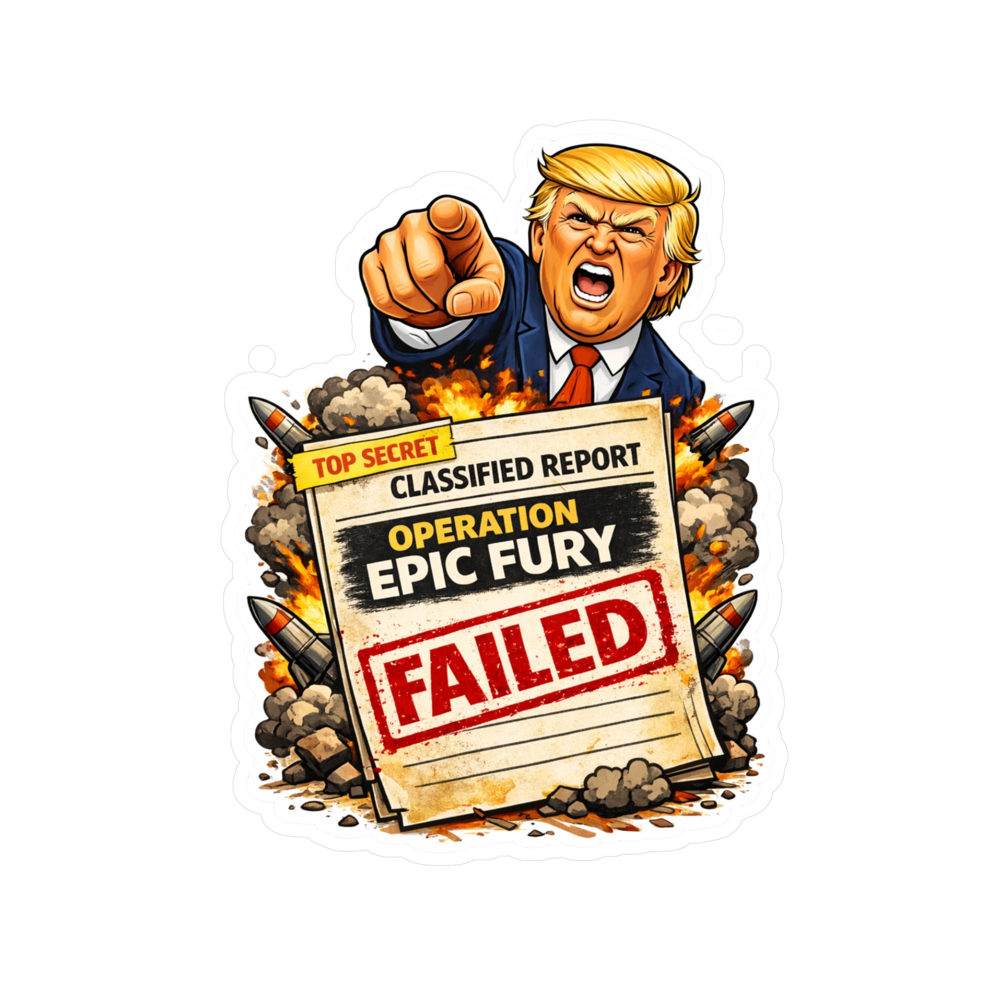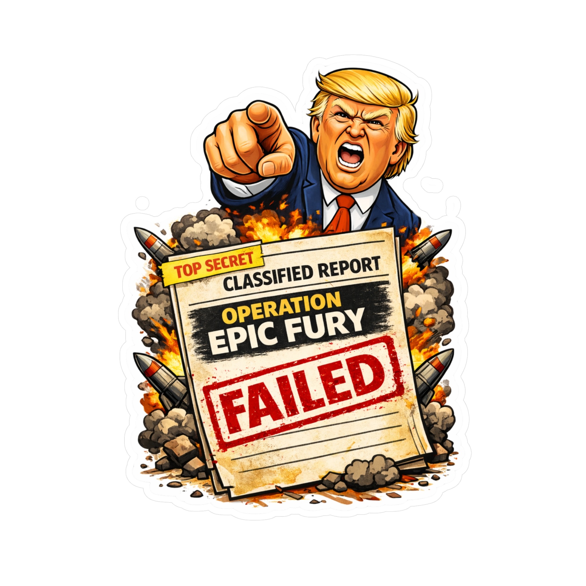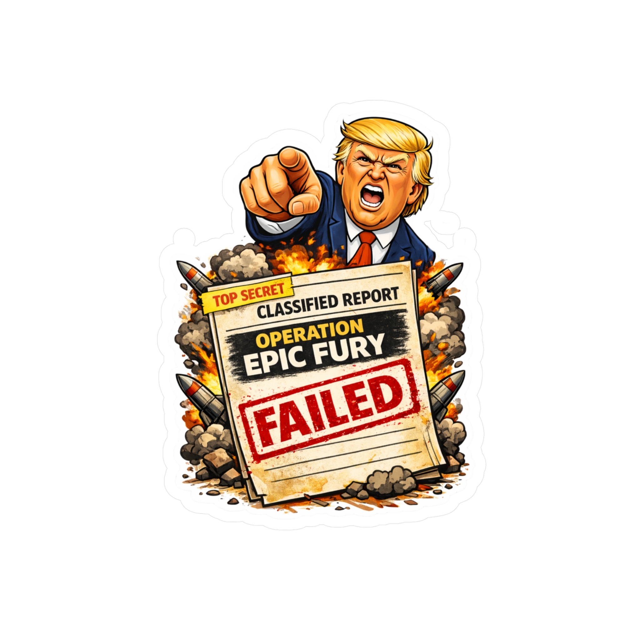 Make a bold statement with this Operation Epic Fury FAILED vinyl sticker — a sharp piece of satirical protest art designed for people who love political stickers that actually say something.