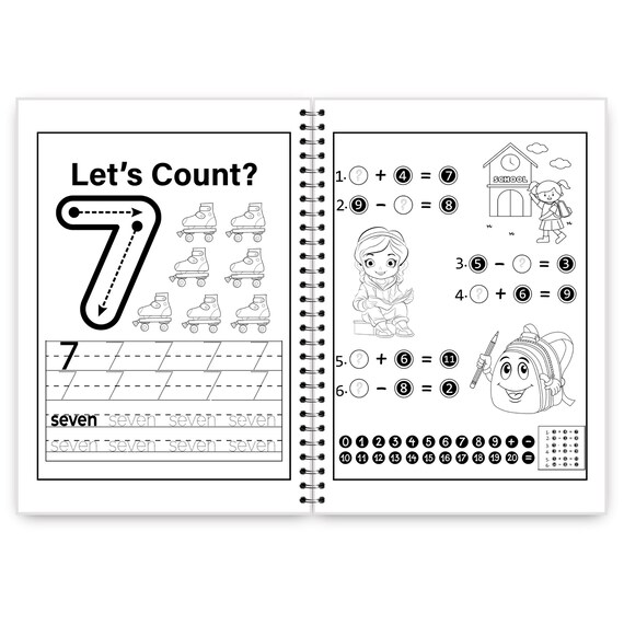 Inside, children practice essential early math skills through playful repetition and simple, confidence-building exercises. The activities also transition smoothly into beginner 1st grade worksheets, making this workbook ideal for kids preparing for the next learning stage.