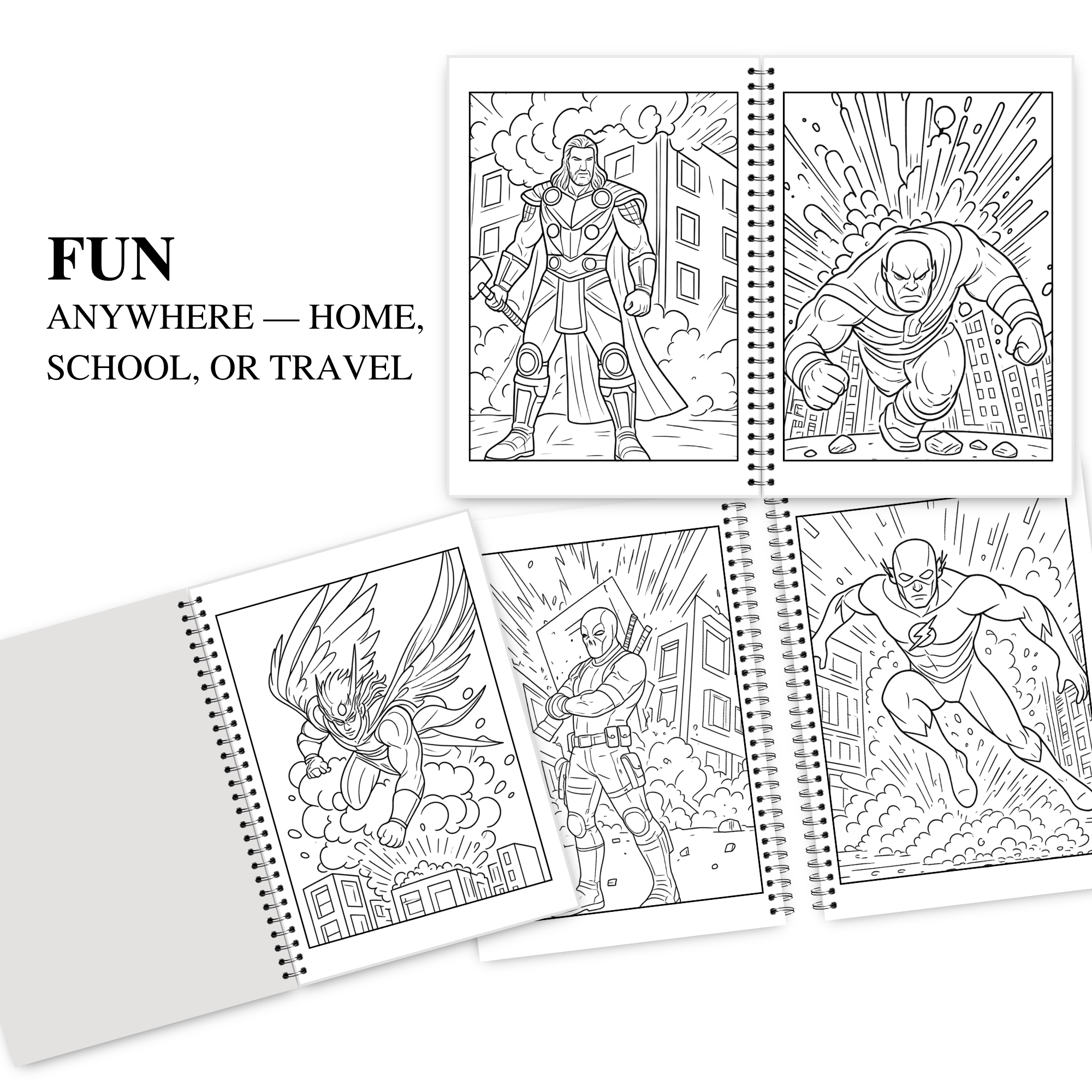 Superhero fans, comic lovers, gift giving, travel activities, family fun, and relaxing creative time.